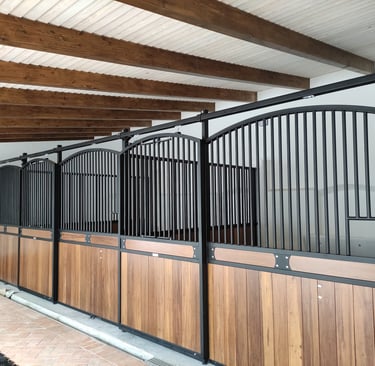 A estrutura e a grelha são fabricadas em ferro galvanizado a quente, havendo a possibilidade de ser lacado na cor que pretender. O revestimento pode ser em compósito de 32mm, altamente resistente ao impacto, ou bambu de 32mm para quem deseja um acabamento mais luxuoso.