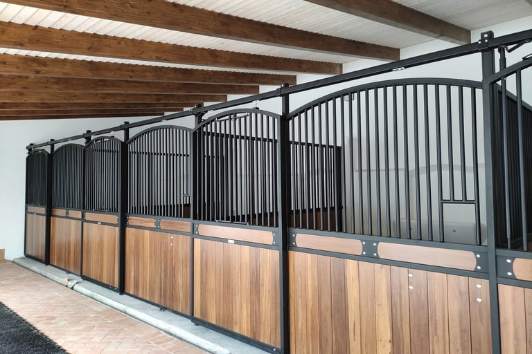 A porta da box pode ser de batente ou de correr, havendo a possibilidade, também, de ter uma janela de abrir dupla na grelha da porta.