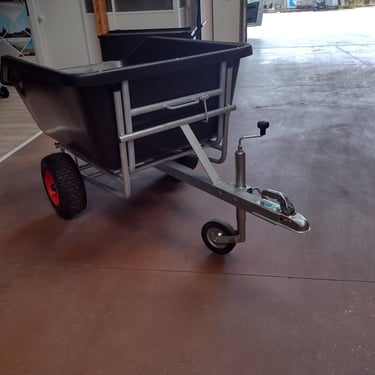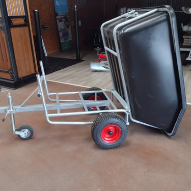 Carrinho com engate de reboque para uso no seu estábulo e facilitar o seu trabalho, fabricado na cor preta com materiais de alta qualidade e com uma capacidade de 600Lts.
