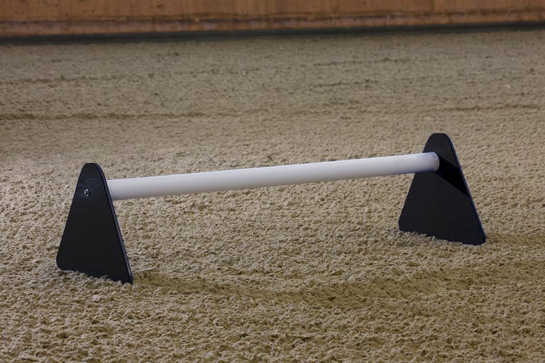 Cavalete inovador e único, com paineis laterais triangulares e uma vara de PVC de 180cm. Os triângulos permitem que a vara seja colocada em 3 alturas diferentes e impedem que a corda agarre os cavaletes enquanto se arremessa.