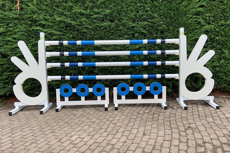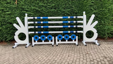 Obstáculos com design pré concebido (conforme imagens) com estrutura em alumínio, para uma maior durabilidade, e varas de 3,00mts. Incluem suporte de varas e bandeiras
