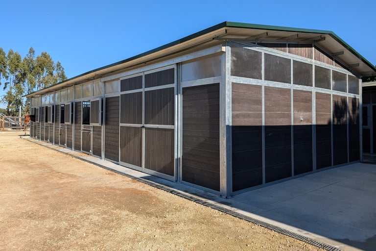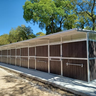 As Boxes Exteriores são fabricadas em ferro galvanizado a quente, existindo a possibilidade de ser lacado na cor pretendida por si, e revestido com tábuas de compósito plástico de alta resistência, com uma espessura de 32mm, ou em bambu.