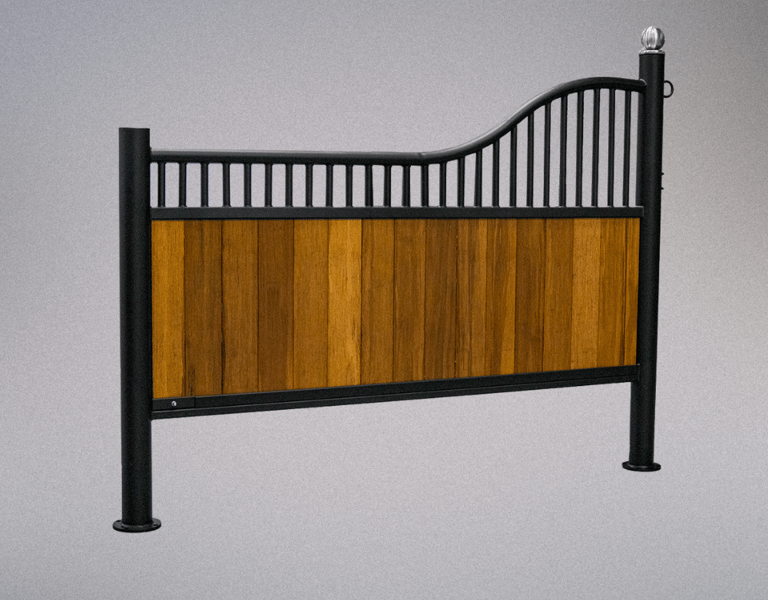 Baie fabriquée en fer galvanisé à chaud et laqué dans la couleur souhaitée, avec deux points d’attache pour le cheval.