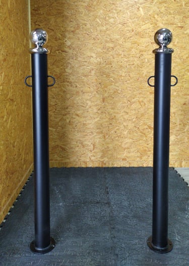 Poste de atar de ferro galvanizado a quente e lacado de alta durabilidade com 2 pontos de amarração. Inclui bola de inox e base prateada (conforme imagem), existe a possibilidade de trocar o acessório no topo (sujeito a alteração do preço)