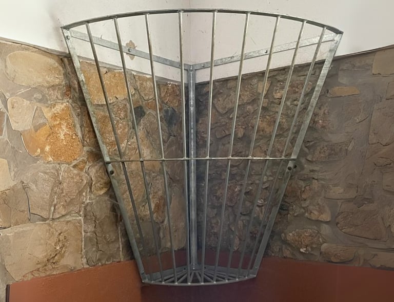 Manjedoura de feno/palha de canto fabricada em ferro galvanizado a quente altamente resistente ao impacto. Fabricada em tubos redondos e sem esquinas aparentes para evitar que o cavalo se magoe. Esta manjedoura de canto ajuda a economizar espaço nas suas boxes.