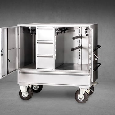 Tem capacidade para armazenar 2 selas e 6 bridões, têm 3 gavetas na vertical de grande capacidade de arrumação e uma gaveta na horizontal para arrumação de cobrejões, suadouros ou outro material.