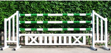 Set de 5 obstáculos ideal para os seus treinos. Este set inclui 10 Anteparas em alumínio lacado com 160cm de altura por 60cm de largura; 4 postes lacados a branco com 160cm de altura; 15 varas; 4 cancelas suspensas; 2 cancelas; 38 suportes de varas em PVC; 4 suportes de segurança e 10 bandeiras e respectivos suportes