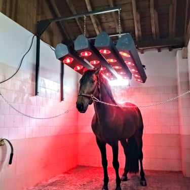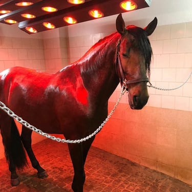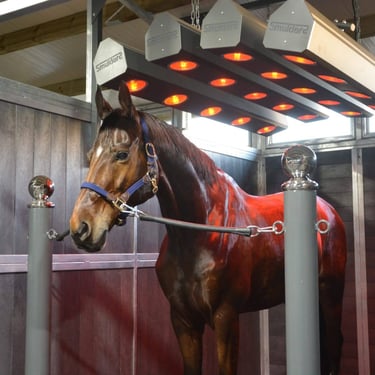 O solário é uma solução rápida e eficiente para a secagem dos cavalos, podendo ser utilizado para aquecimento muscular e fins terapêuticos.