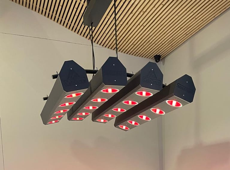 ● Solário de 4 corpos, com um total de 20 lâmpadas de infravermelhos (150W cada) e 4 ventiladores, com uma potência total de 220-224v, 50-60Hz e 3088W e um peso de 60Kg.