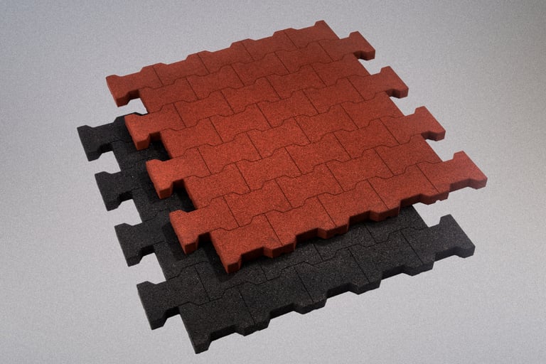 Tapete drenante em puzzle recomendado para zonas de circulação. Têm 1,12x1,00 mts e existe a possibilidade de o fornecer com uma espessura de 15mm; 30mm ou 43mm. Este tapete está disponível em preto, verde ou vermelho.