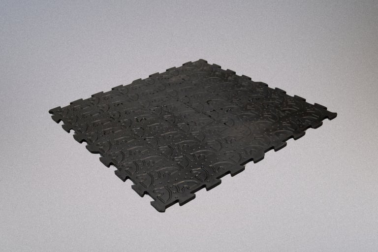 Tapete impermeável com sistema de puzzle ideal para zonas de duche, limpeza e passagem, com 1x1mts, 16mm de espessura e 19kg/m2.
