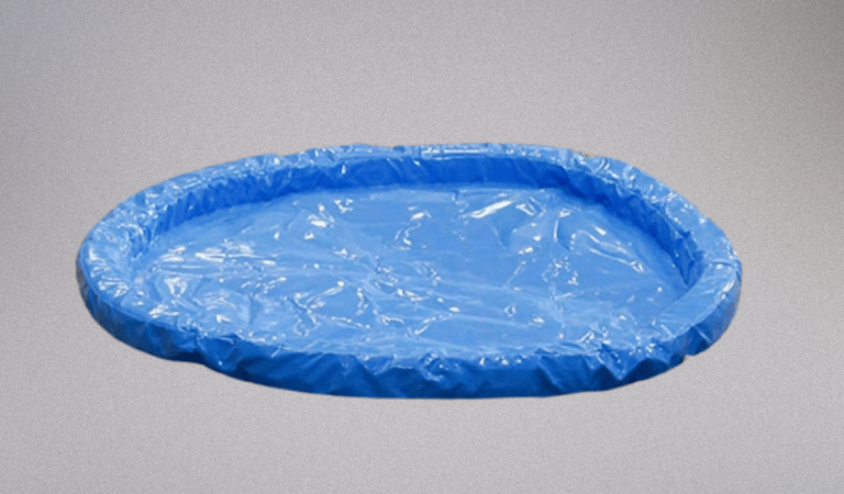 Vala de água em pvc azul com 1 metro de diametro.