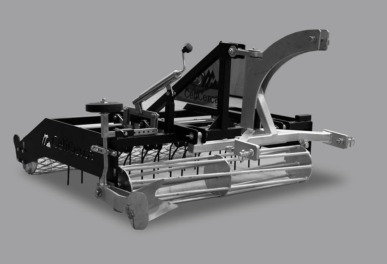 A Alfaia Celicerca é extremamente versátil e de fácil utilização, adequada a todo o tipo de pisos (independentemente da disciplina) e pode ser rebocada por uma mota4 ou um trator. Com a nossa Alfaia consegue, com uma única passagem, regularizar o piso, garantindo a qualidade da superfície através do nosso sistema de dois rolos e de molas escarificadoras em aço ajustáveis em profundidade, assim é possível uma correta manutenção do piso garantindo a preservação das telas na base. Possui, também, uma lâmina lateral para a recolha de areias junto de teias e muros, mantendo assim um piso sempre nas melhores condições (indicado para pisos sem fibras)