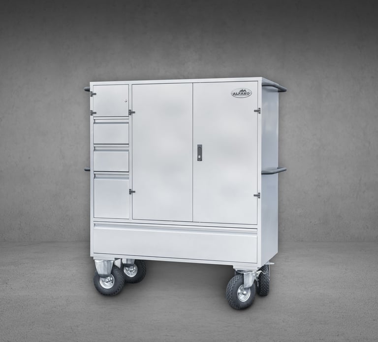 Roues ⌀260 mm (2 fixes et 2 pivotantes, avec freins).