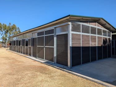 Construímos a sua nave conforme as suas necessidades, com o número de boxes que desejar, com ou sem casa de arreios, entre outras opções que pode personalizar.