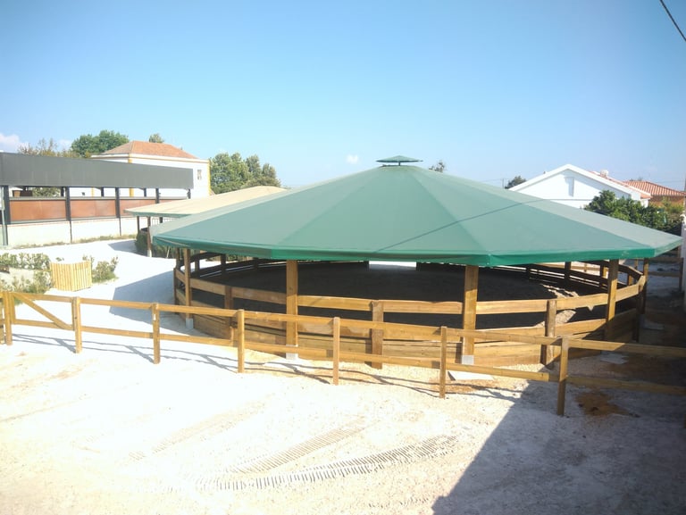 Projetado para oferecer maior proteção contra as condições climáticas, o redondel coberto proporciona um ambiente controlado e seguro para o treino e movimentação dos cavalos. Ideal para todas as estações do ano, garante conforto tanto para os animais quanto para os treinadores.