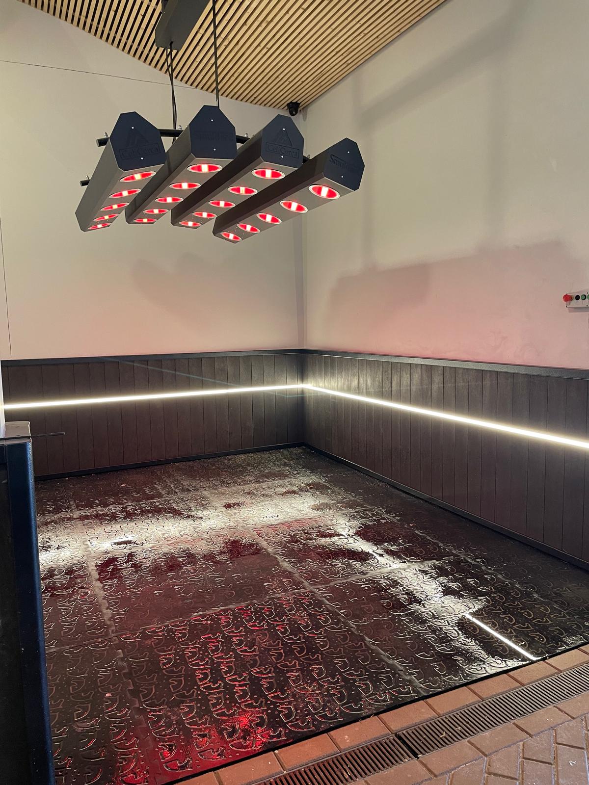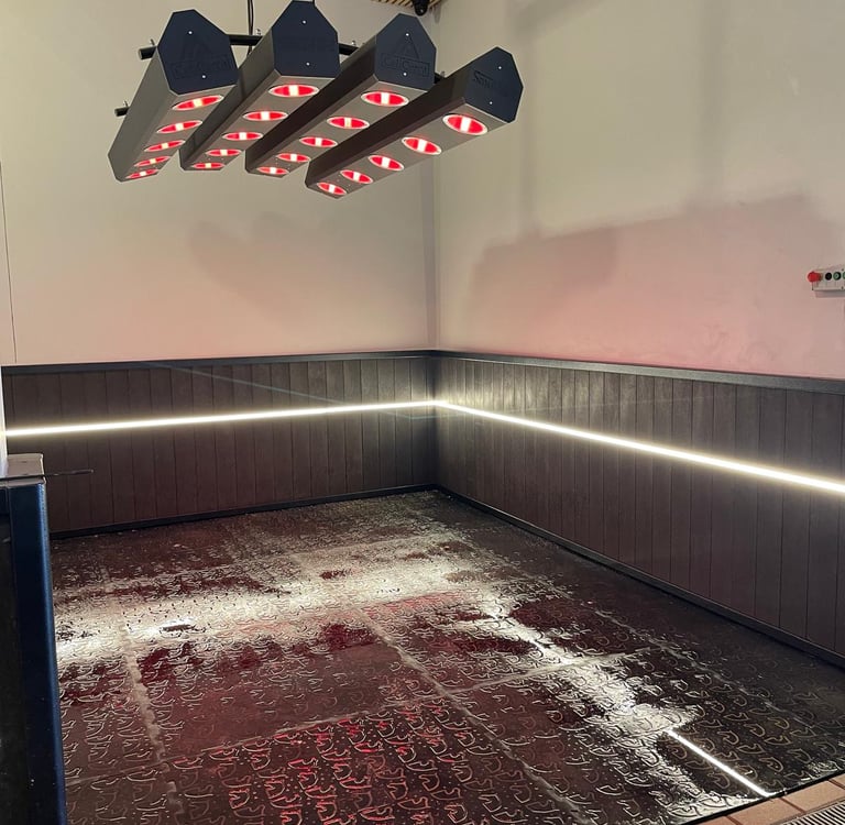 ● Solário de 4 corpos, com um total de 20 lâmpadas de infravermelhos (150W cada) e 4 ventiladores, com uma potência total de 220-224v, 50-60Hz e 3088W e um peso de 60Kg.